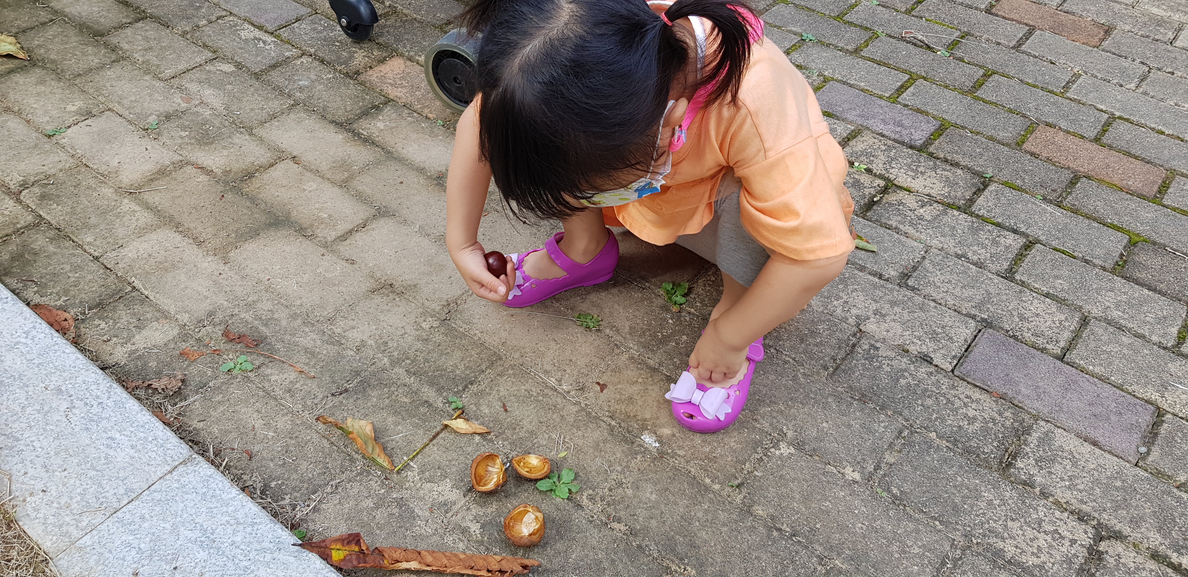 아이들과 아파트 놀이터에 가는길에 발견한 밤같이생긴열매