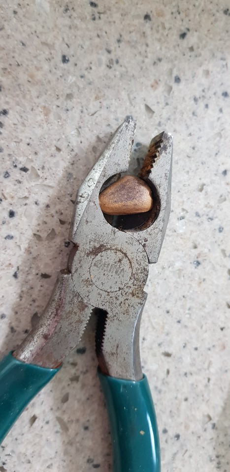 너무 불편해서...집에있는 펜치를 가져와봤습니다 묵직한 도구가 더 잘될것 같은...ㅎㅎ