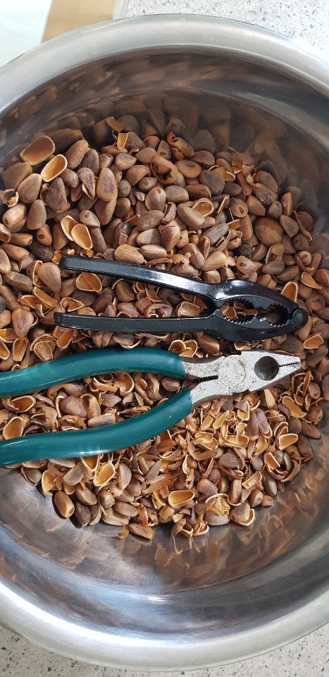 잣알맹이 1kg 가격이 보통 7만원 했던것 같은데.. 잣송이를 수확하고 겉껍질 속껍질 까며.. 생산자분들에 노고를 생각하면 어쩜 7만원이란 가격이 맞을까? 싶기도 하며.. 아무튼 잣까는 도구, 잣 속껍질 쉽게 까는방법!!